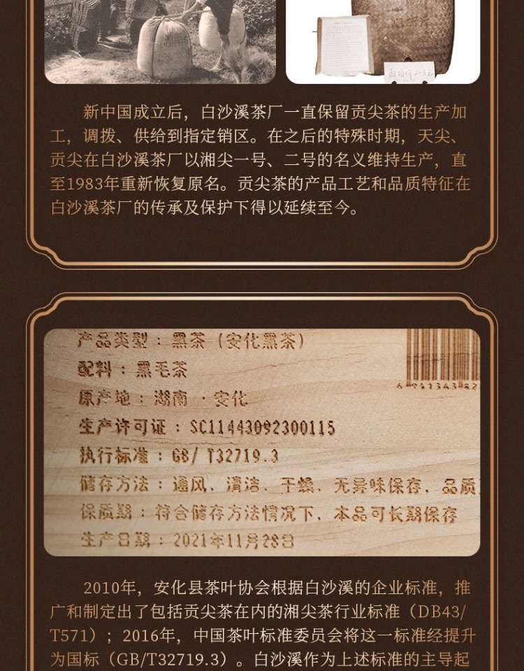 湖南正宗安化黑茶白沙溪2011年老料陳年貢尖茶湘尖880g